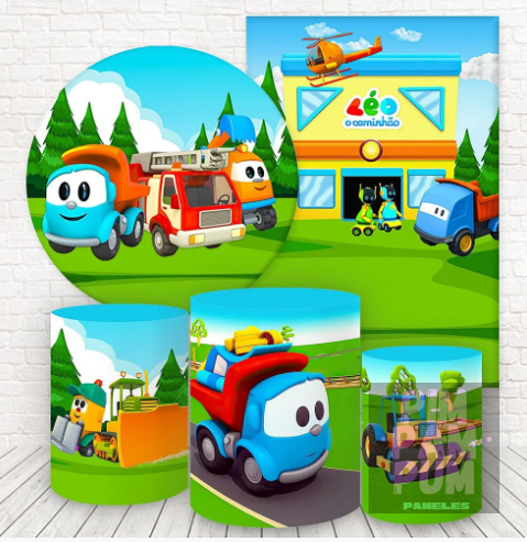 Un diseño inspirado en el universo de Leo y el Camión, con colores vibrantes, vehículos y detalles educativos que crean una ambientación alegre y llamativa, perfecta para mesa principal, candy bar o sector de fotos. Ideal para cumpleaños infantiles llenos de entretenimiento y juego.