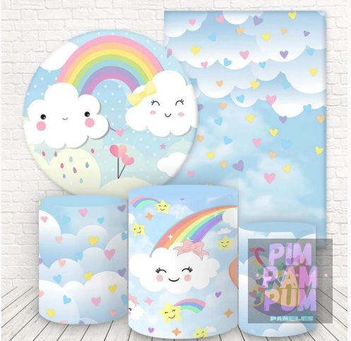 Un diseño encantador con nubes, corazones y tonos suaves que crean una ambientación delicada y armoniosa, perfecta para mesa principal, candy bar o sector de fotos. Ideal para cumpleaños infantiles, baby showers y celebraciones llenas de amor.